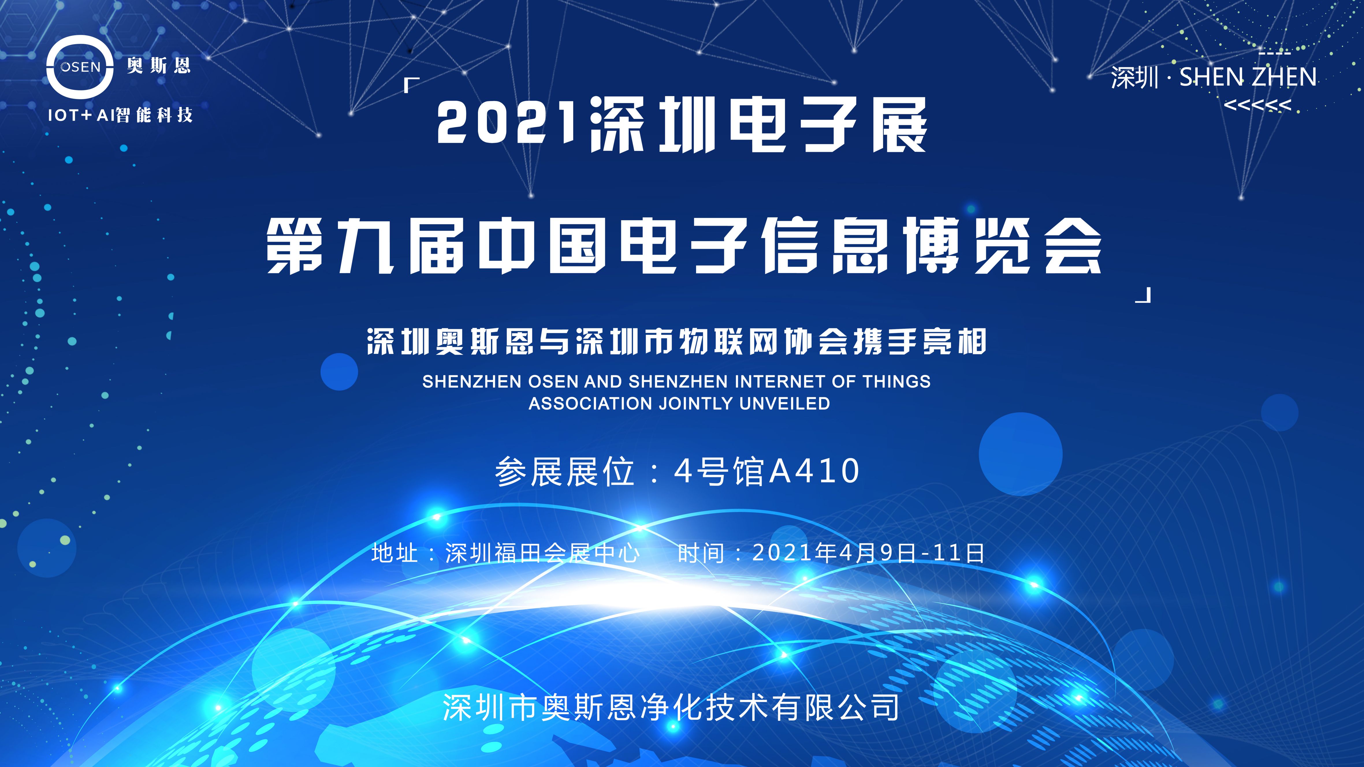 4月9-11日,深圳奧斯恩與深圳市物聯(lián)網(wǎng)協(xié)會攜手亮相第九屆中國電子博覽會!