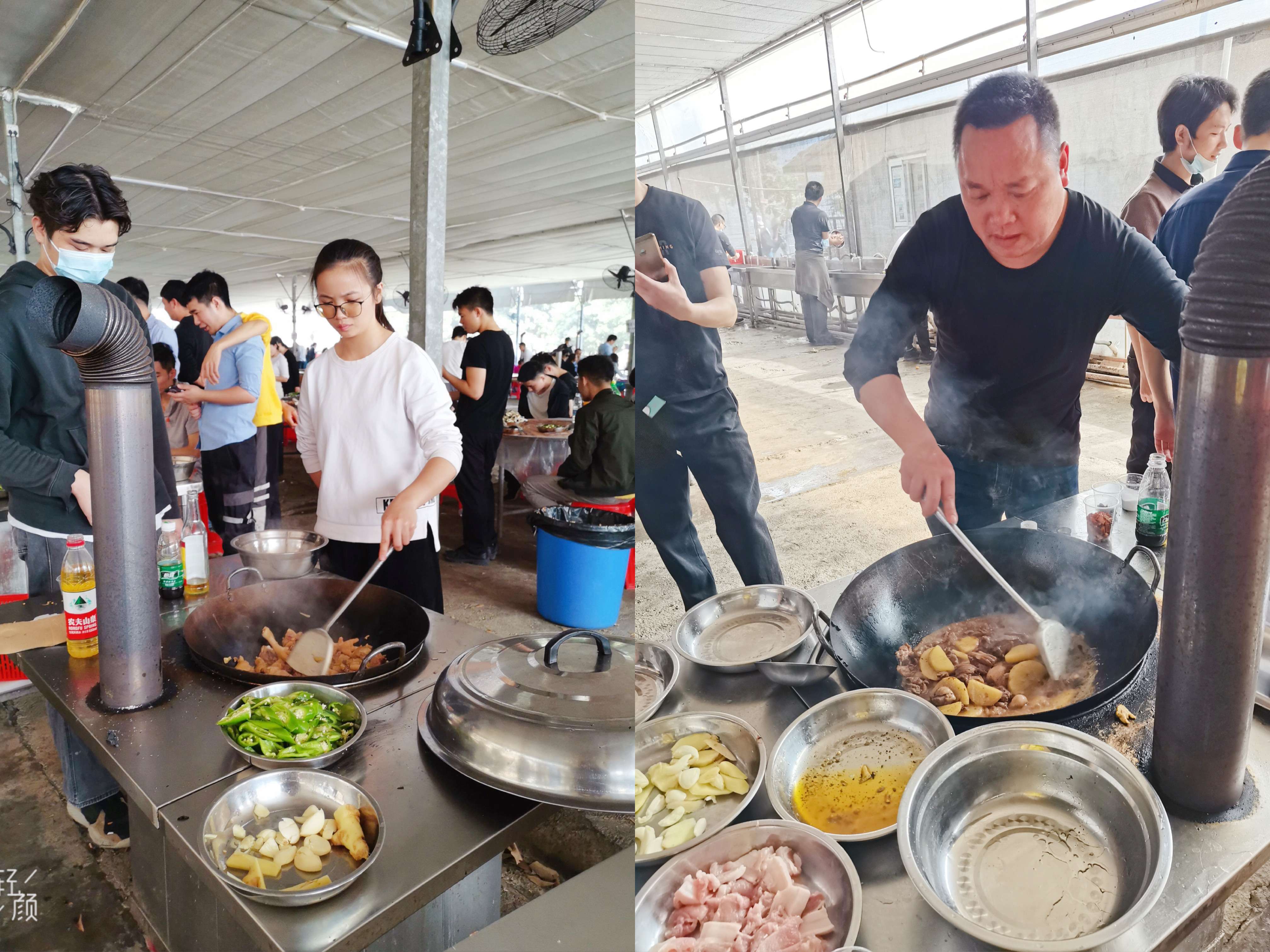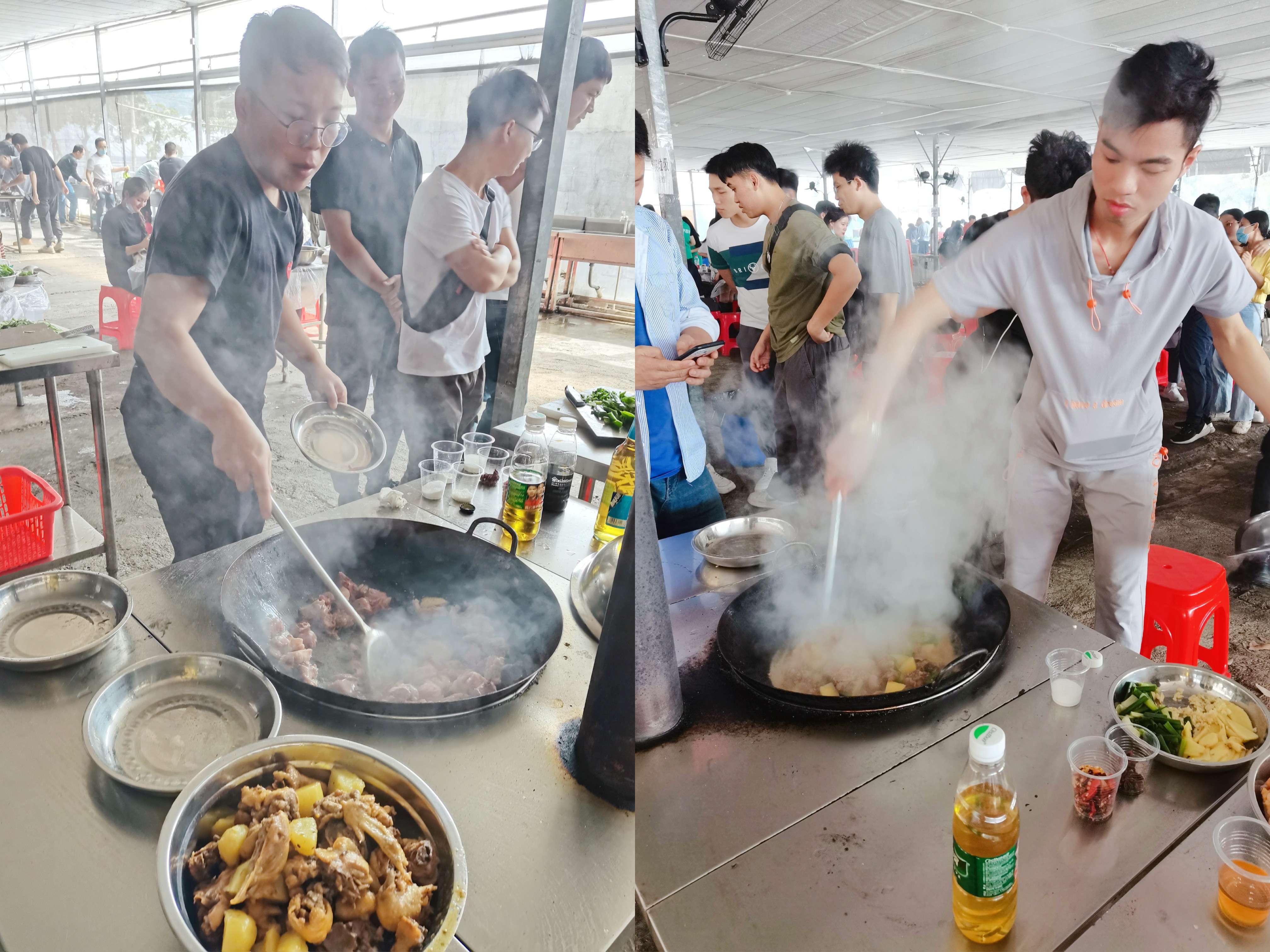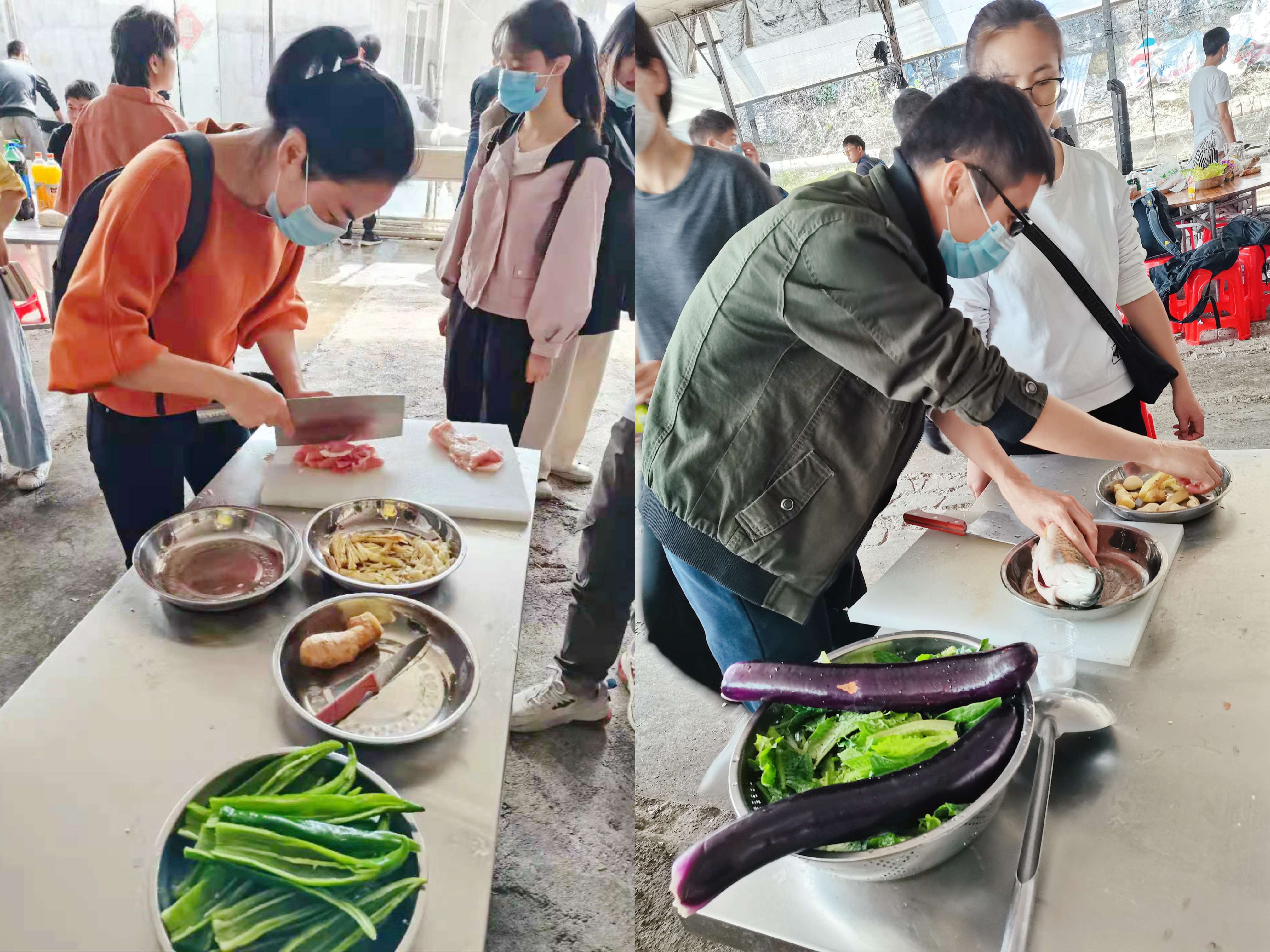 中午的《野炊大比拼》把氣氛再次掀起了高潮,《野炊大比拼》互動廚藝,讓舌尖上的家鄉(xiāng)味在這里飄香。組隊分班、排兵布陣,人員共分成四個班,每個班選出一名炊事班班長、由各班長帶領(lǐng)各班人員進行領(lǐng)取物資準(zhǔn)備廚藝展示!雖然做飯不是一樣容易的活,大家剛開始還是有點抵觸,但是現(xiàn)在大家把它當(dāng)成一個團體項目 ,分工明確后,大家有條不紊的配合著,洗菜的洗菜,殺魚的殺魚,剁雞的剁雞、砍鴨的砍鴨、切肉的切肉、炒菜的炒菜、生火的生火,小伙伴們都在為了能早點吃到可口的飯菜而忙碌著.....