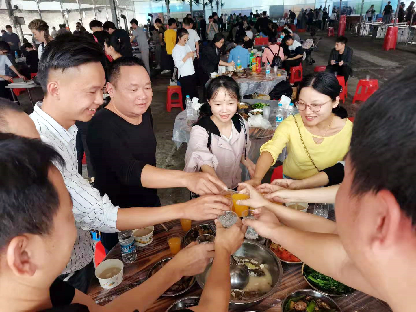 在炊煙裊裊中,經(jīng)過一個半小時的“奮戰(zhàn)”,一道道美味佳肴呈上“飯桌”香味四溢,令人垂涎三尺。大家先拍照留念,然后再一起舉杯,祝大家開心快樂,事事順利!