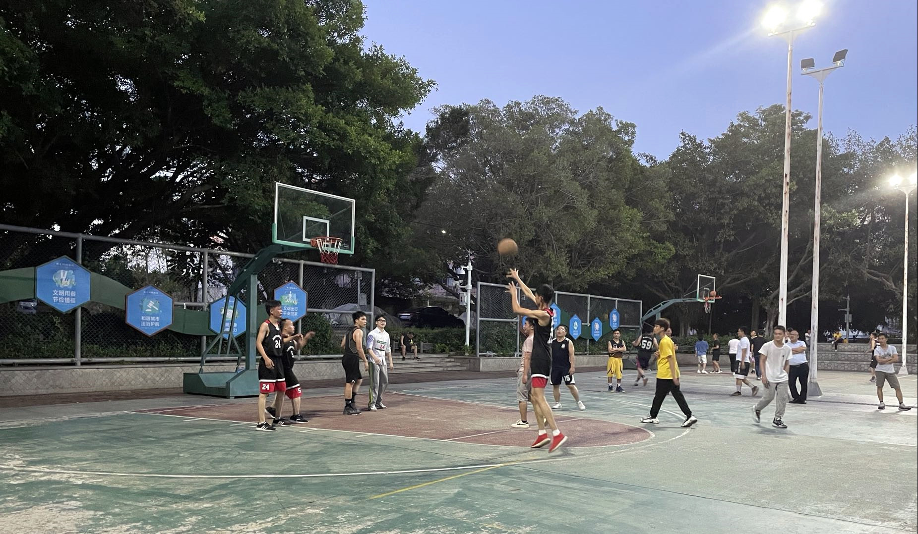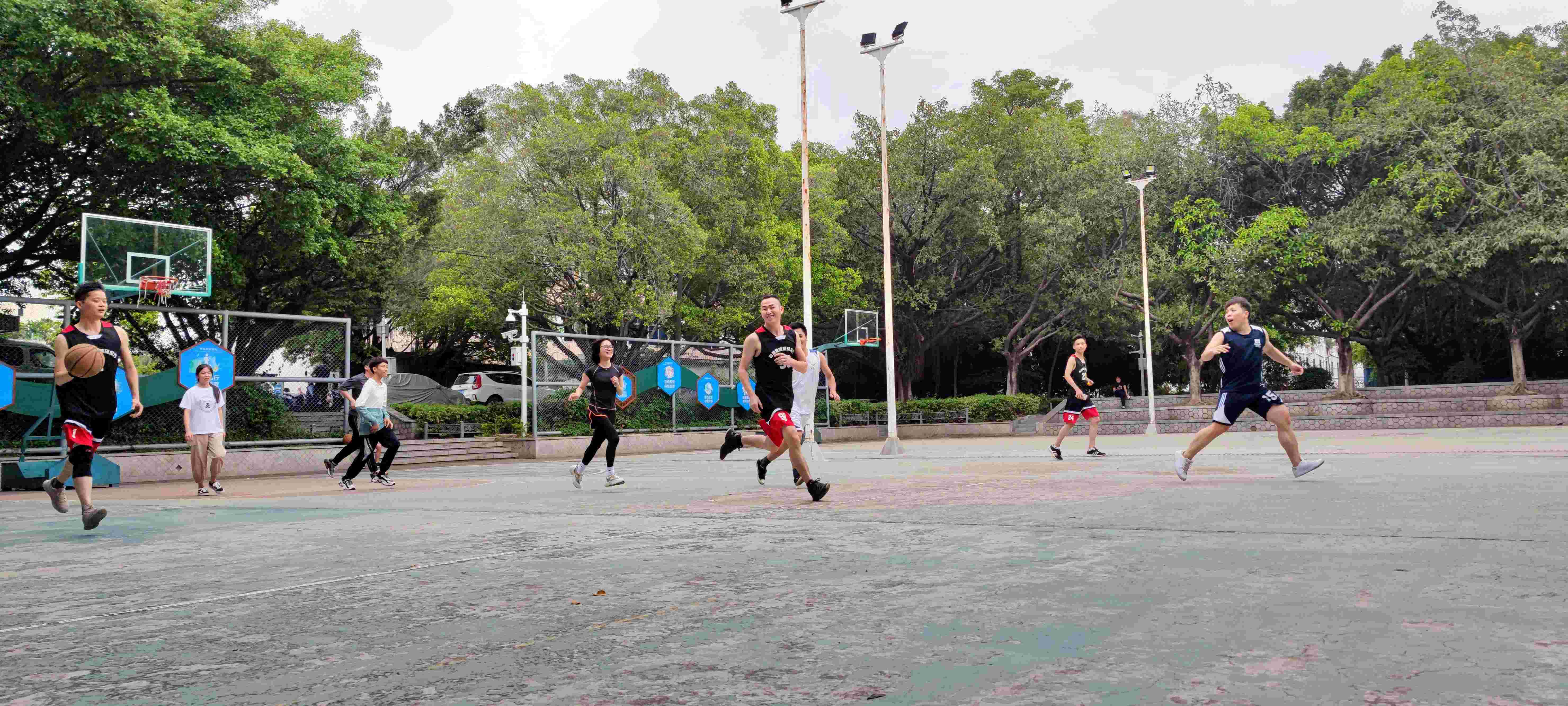 拔河比賽結(jié)束后大家稍作休息,緊接著又開始了當(dāng)天的重頭戲-籃球比賽。本次籃球比賽增加了精彩的解說環(huán)節(jié),原本就已激烈精彩的比賽,在解說員的形色解說下又增添了幾分趣意,笑點(diǎn)滿滿,把臺下的觀眾也逗得捧腹大笑。