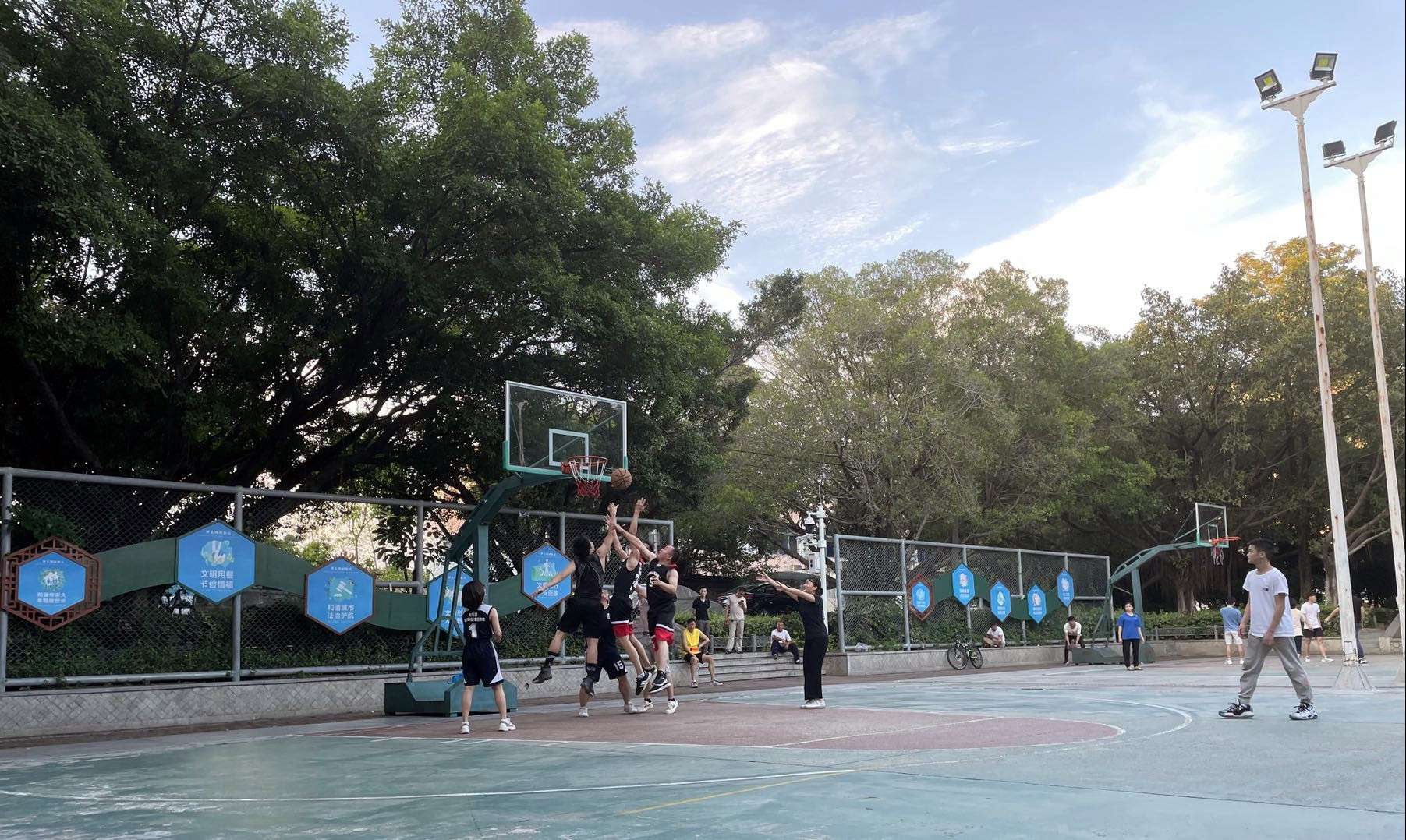 伴隨著哨聲的響起,現(xiàn)場的氣氛極具攀升,各隊(duì)員很快進(jìn)入激烈角逐的狀態(tài),場下的啦啦隊(duì)為他們吶喊助威!女隊(duì)員給男隊(duì)員攔人,男隊(duì)員負(fù)責(zé)帥氣的進(jìn)攻上籃得分,每個(gè)人都雄姿英發(fā),開啟暴走模式,你爭我奪,你攻我守。比賽越是進(jìn)行到尾聲越是精彩,巧妙的傳球、華麗的轉(zhuǎn)身、經(jīng)典的跳投,再加上解說員的渲染解說,更加精彩無比了。