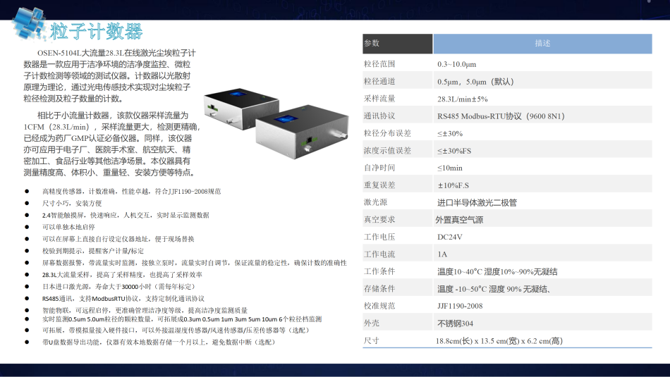 通過OSEN-5016M/5104M粒子計數(shù)器(0.5、5.0微米 2.83/28.3升/分鐘)用以監(jiān)測空氣中的粒子數(shù)量
