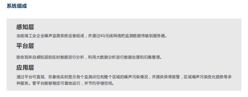 奧斯恩OSEN-Z通過物聯(lián)網(wǎng)技術(shù)與現(xiàn)場端儀器儀表進(jìn)行互聯(lián)互通,完成對環(huán)境噪聲數(shù)據(jù)實(shí)時(shí)采集,并對采集數(shù)據(jù)統(tǒng)計(jì)分析,計(jì)算噪聲值,是一種簡易型的戶外噪聲自動(dòng)監(jiān)測系統(tǒng),它由數(shù)據(jù)顯示大屏、噪聲傳感器、數(shù)據(jù)采集統(tǒng)計(jì)分析軟件、GPRS無線傳輸模塊、服務(wù)器云平臺軟件、微信客戶端等部分組成。噪聲計(jì)測量范圍大、功能強(qiáng)穩(wěn)定性好、可實(shí)現(xiàn)遠(yuǎn)程視頻監(jiān)控、遠(yuǎn)程廣播喊話等功能。廣泛應(yīng)用于建筑施工噪聲監(jiān)測。