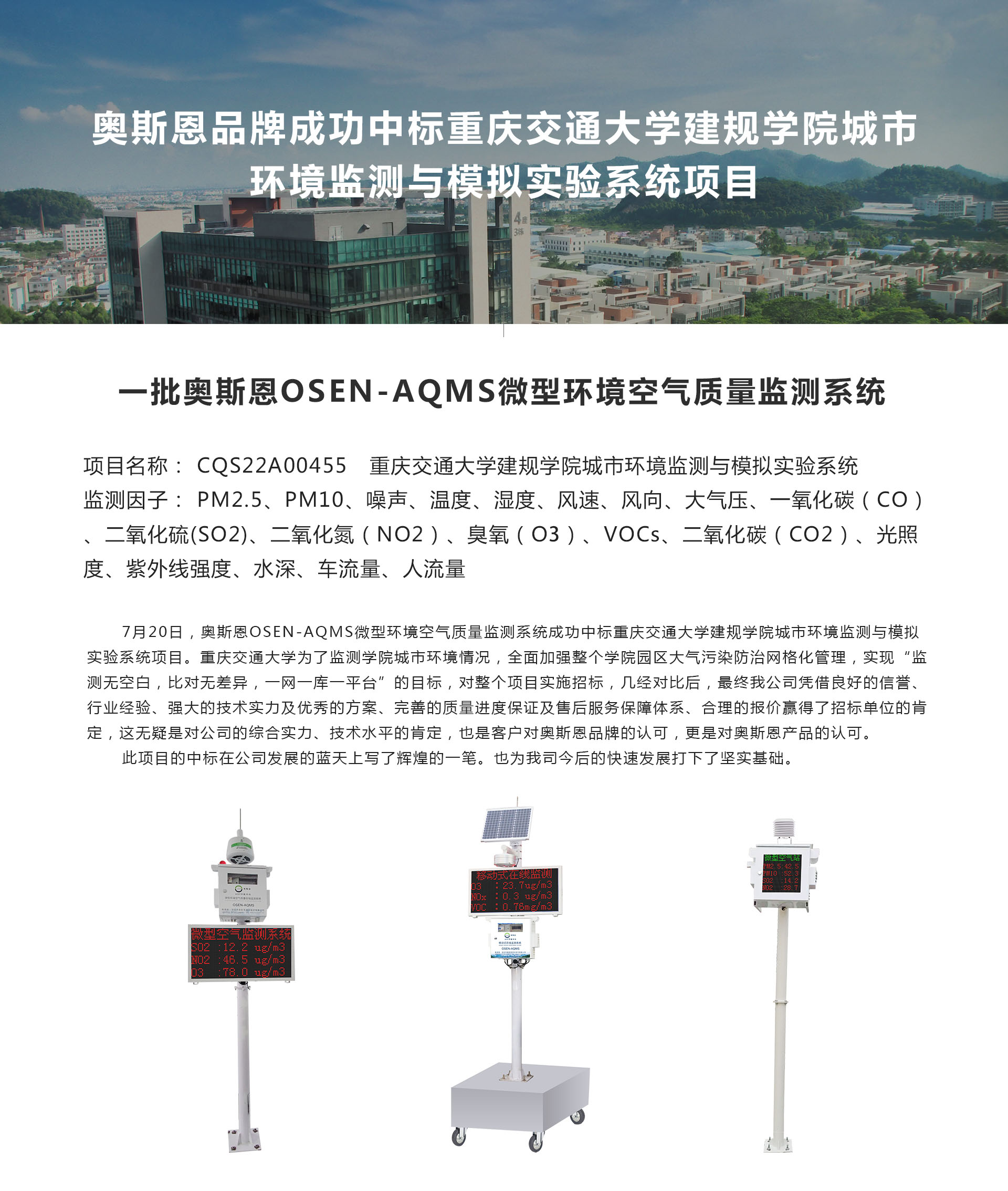 成功中標(biāo)重慶交通大學(xué)建規(guī)學(xué)院城市環(huán)境監(jiān)測與模擬實驗系統(tǒng)項目