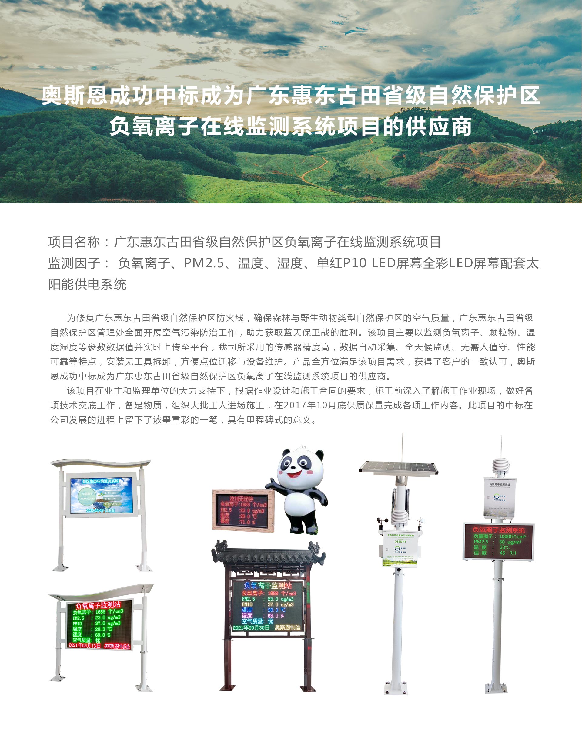 奧斯恩成功中標成為廣東惠東古田省級自然保護區(qū)負氧離子在線監(jiān)測系統(tǒng)項目的供應商